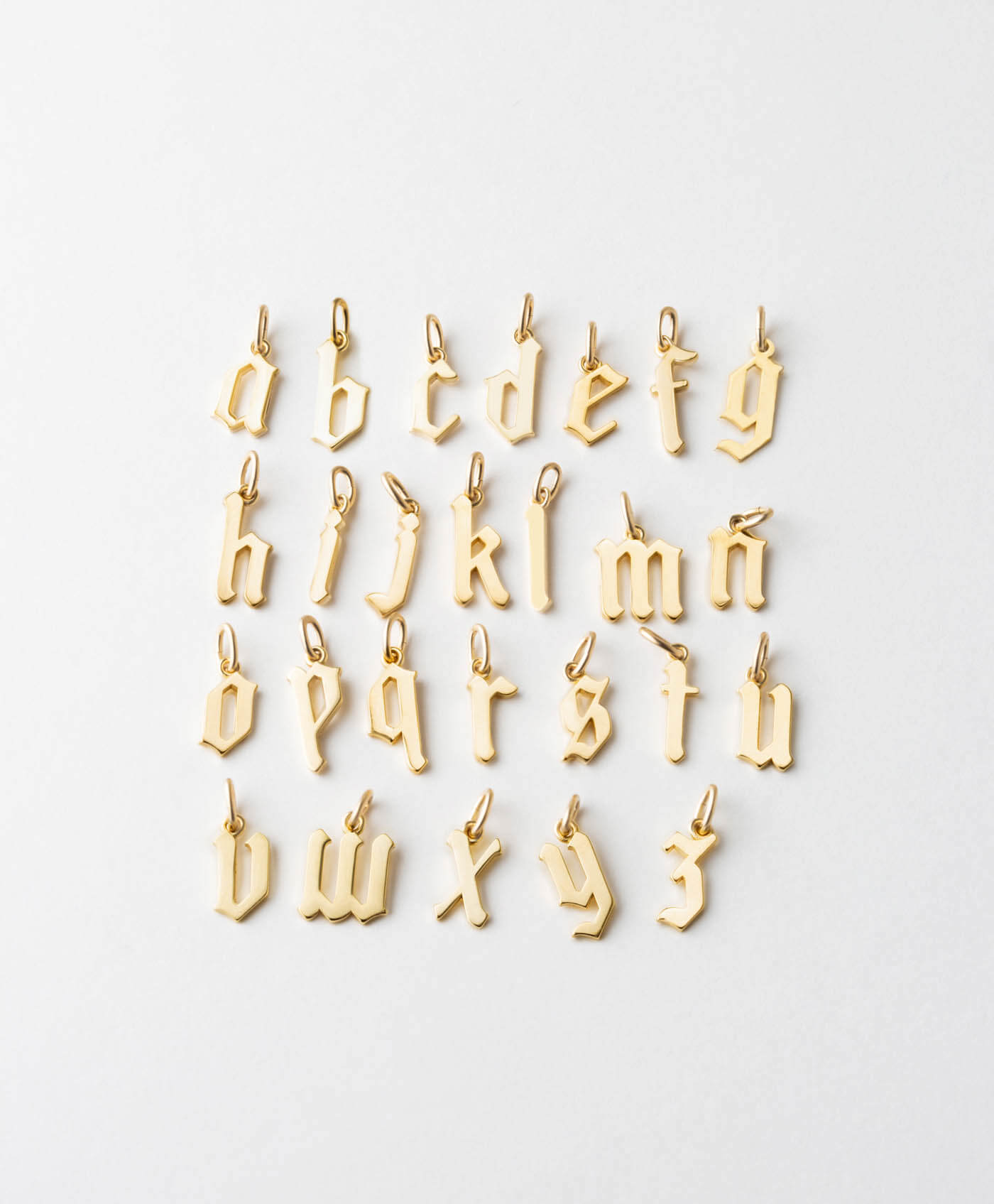 Delicately dramatic. Just edgy enough. Bring big personality to your stack with this dainty add-on initial in a gothic lettering style—a team favorite here at GLDN!