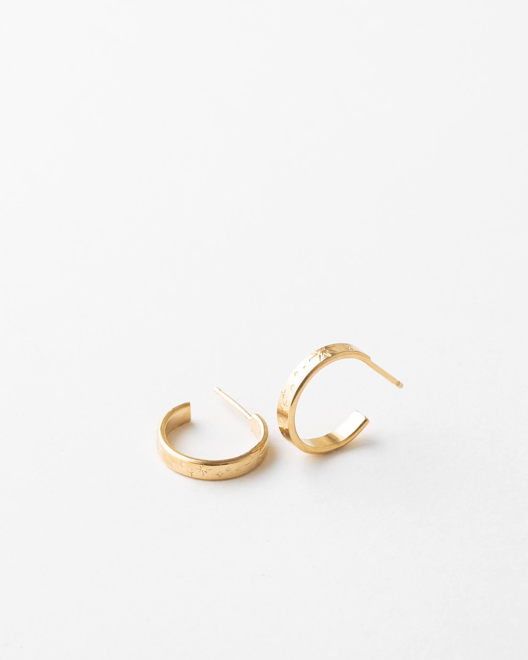 Hand-personalized with dainty stars on a streamlined silhouette, these hoops bring just enough celestial energy to your everyday stack. For the modern stargazer. Sold as a pair.