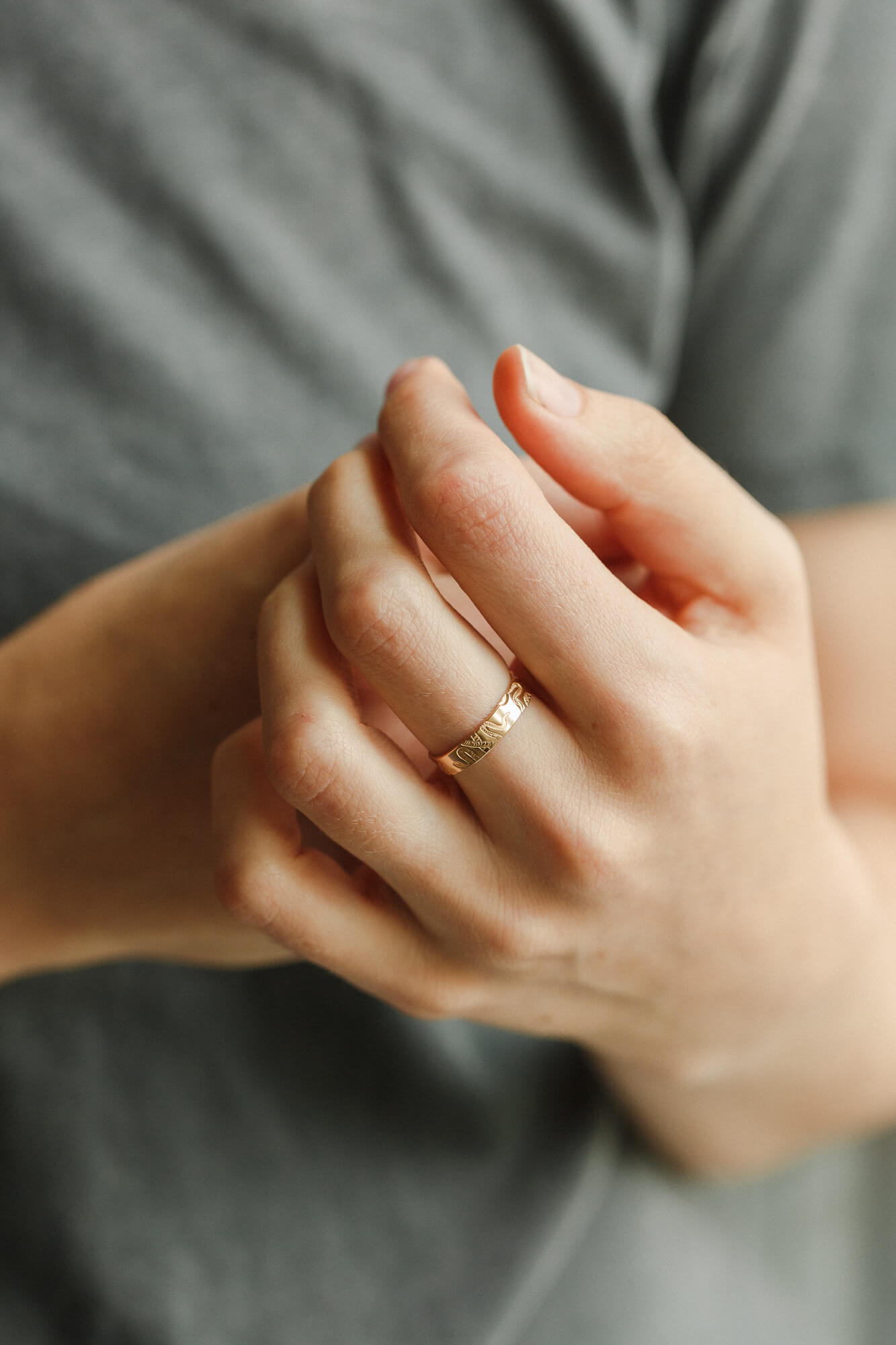 Ring sizing tip:thicker bands (like these!) tend to fit tighter than daintier stacking rings since they cover more space on your finger. You might need a half size larger for a comfy fit.